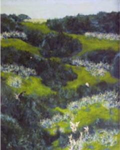 When I got down to it, the painting had to be about celebrating spring, being comfortable with nature, at home, being safe, being on the right path for who you are, and knowing it. It wasn’t about rugged individualism; it was about being present. To do your life’s work, knowing that to be alone much of the time is OK. That taking a deep breath is as good as any prayer. That maybe life as we know it is OK. If we keep our eyes open and let ourselves be part of the landscape, perhaps we can accept all that is.